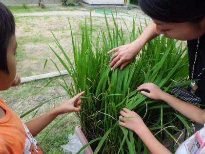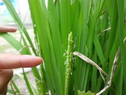 2年生が育てているイネが,花を咲かせたようです。