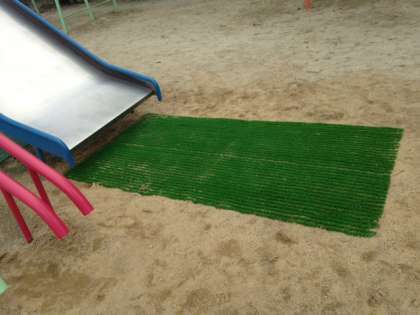 ブランコの下と総合遊具の滑り台の下の安全のためのマットを新しくしました。