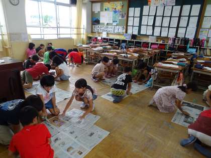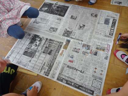 1平方メートルの新聞紙を使っていろいろな場所の広さを調べました。