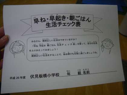 そして、夏休み明けの一週間、早ね・早起き・朝ごはん 生活チェックを行いました。