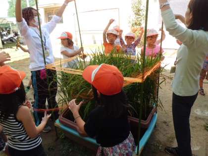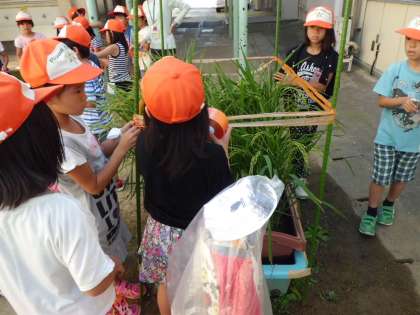 みんなで手分けをして,鳥よけ(すずめ)を作りました。