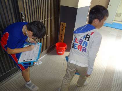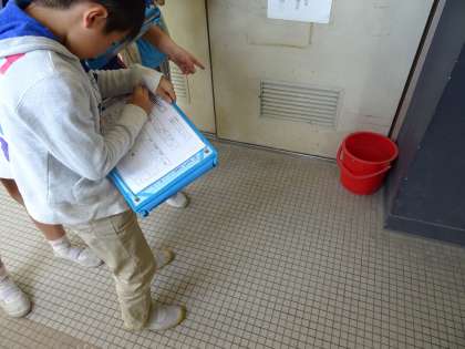 学校にある消防器具や設備を調べ,学校教室配置図にまとめました。