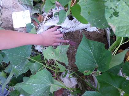土の中から,おいもも顔を出していました。