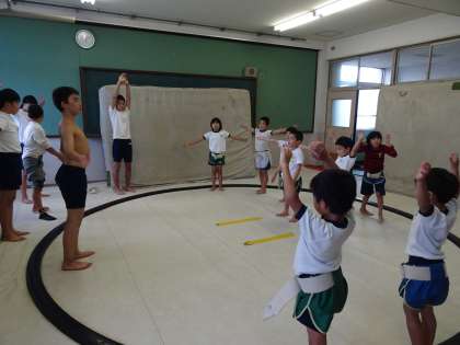 第9回御香宮ちびっ子相撲大会に向けて,相撲部に入っていない参加者を対象に実技指導を行いました。