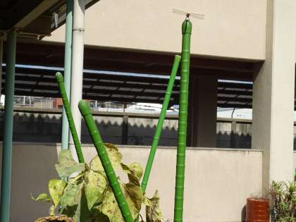 秋になり,動物の活動のようすに変化が表れてきました。産卵を終えたトンボが花壇で休憩していました。