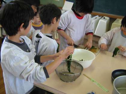 胡麻油と胡麻とかつおの香りが,食欲をそそる一品が出来上がりました。給食の時間にいただきました。「自分で作ったお料理は,格別の味やなあ。」と,笑顔で完食した3年生の子どもたちでした。自然の恵に感謝して…。
