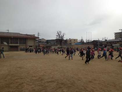 雪のちらつく中,一生懸命の5分間走を頑張りました。