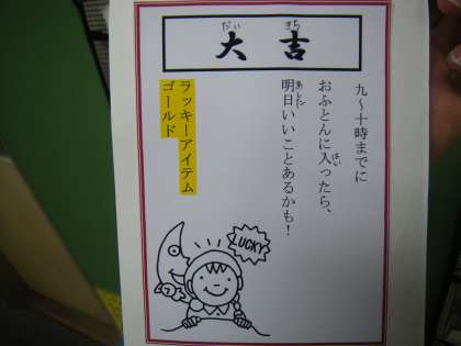 健康に関するおみくじで、一日を健康にすごすためのヒントが書かれています。