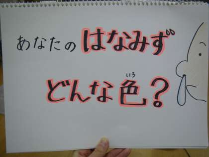 鼻水はからだを守るために、ウイルスなどをからだの外に追い出す役割をしていること、鼻水の色で、自分の体調を知ることができるということです。