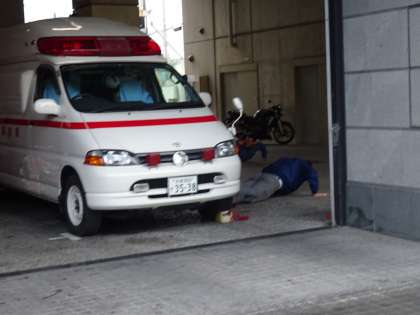 京都まなびの街生き方探究館のモノづくりの殿堂へ行きました。途中,消防署員の方がトレーニングをしている姿を見ました。