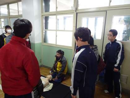 2月8日(日)本校にて,「学区民自主防災訓練」が行われました。伏見中学校の中学生も幼稚園の園児とともに訓練に参加してくれました。