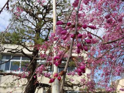 観察池東側の通称「板橋桜」です。こちらは,まだ満開をむかえていません。入学式には,きれいな花を咲かせてほしいと思います。