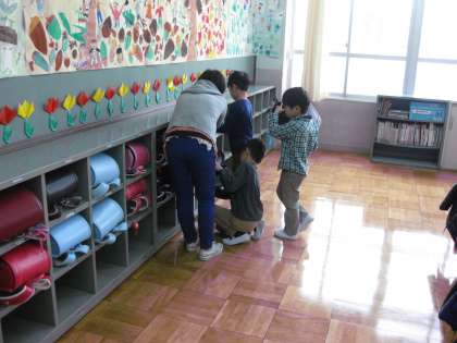 授業の始まる前の様子です。ちょっと緊張気味かな?自分のロッカーにかばんを入れるのも今日が初めてです。