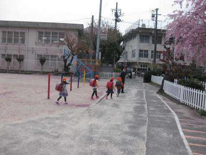 11時を少しまわったぐらいから下校の準備が始まりました。1年生はしばらくの間、集団で下校します。下校の仕方も勉強です。車などに気をつけて、安全にお家まで帰れるようになってくださいね。