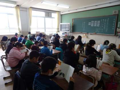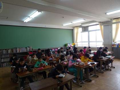 新しい学級での学習開始です。新教室で初めての朝読書です。集中して読書できました。