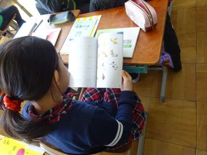 新しい教科書を受け取りました。一生懸命に教科書に目を通す姿が印象的でした。