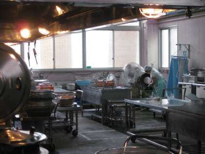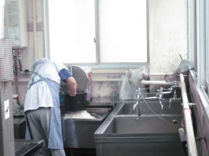 今日から給食が始まります。1年生は、初めての給食なので、他の学年より少し早く準備をします。それに合わせて、今日は給食調理員さんも早い目に調理を開始です。