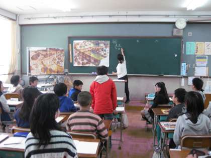 新年度が始まって、まだ2週間たちませんが、本校では本年度第1回目の授業研究会をもちました。本校が授業の中で目指す『対話』『伝え合い』をどのように進めていくのか、モデル授業として6年生で公開授業を行いました。