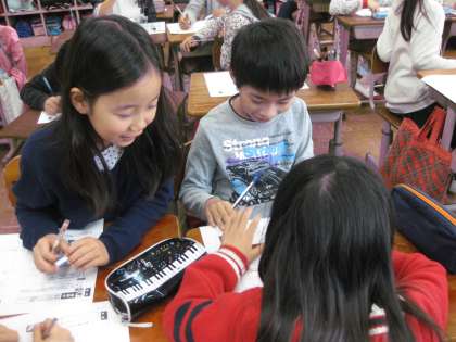 4年生の教室では「教室にあふれさせたい言葉」「教室からなくしたい言葉」について話し合ってました。楽しくそして真剣に話し合っていました。