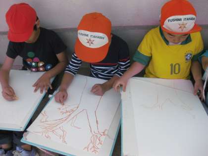 4年生が、学校のシンボルの木の一つ、「柿の木」を写生していました。なかなか難しそうです。できあがりが楽しみです。