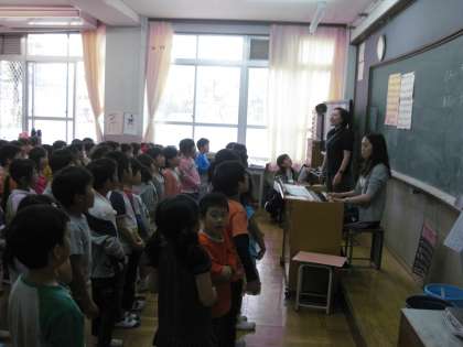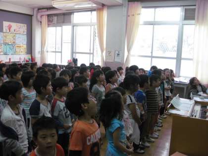 教室のあちらこちらから,1年生をむかえる会の練習の歌声や呼びかけが聞こえてきます。1年生も1つの教室に集まって歌を練習していました。きっと,1年生からのお礼の歌だと思います。元気よくしっかと歌えていました。