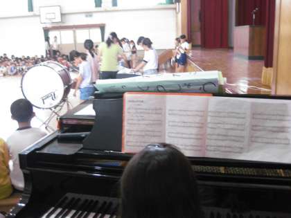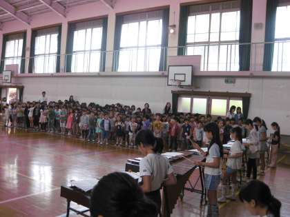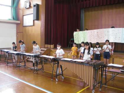 みんなの気持ちを一つにするために,音楽委員会の伴奏で全校合唱をしました。大きな声で楽しく歌えました。子どもたちの心もほぐれて温かくなりました。