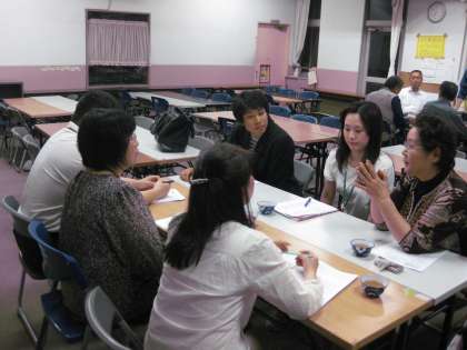 全体会議の後,各企画推進委員会の今年度の取組について,本校の教職員も参加して話し合われました。