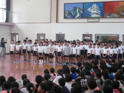 5・6年生の歌声は,ちゃんと頭声発声で歌えていて綺麗でした。2年生から4年生は,とっても元気に歌えました。