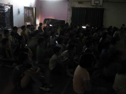 今日は,演劇鑑賞会が体育館で行われました。毎日運動会の練習で気持ちも体も張り詰めているところがあったかもしれませんが,ちょっと一息つけたのではないでしょうか。 撮影禁止なので,一生懸命に鑑賞している子どもたちの様子です。(暗くてよくわかりませんがm(_ _)m)