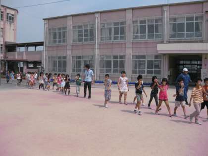 中学年,高学年と順番に避難してきました。最後に,担任の先生から避難人数の確認です。
