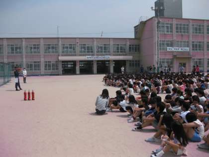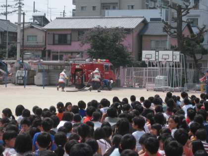 全員避難をした後,伏見消防署の方から火災についてのたくさんのお話をしていただきました。知らないことが多くてとても勉強になりました。是非,お家の人にも話してくださいね。