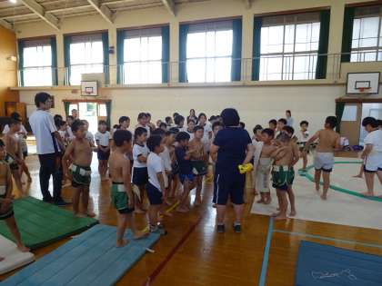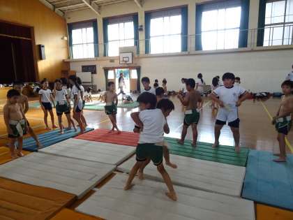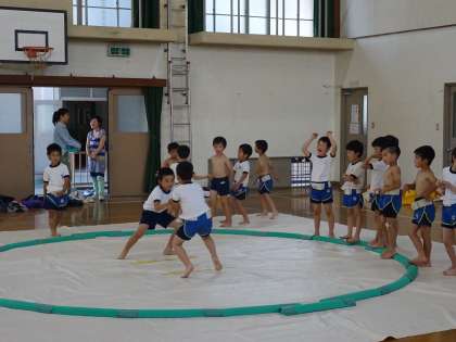 相撲部の活動の仕方を知り,どんどん相撲を取っています。