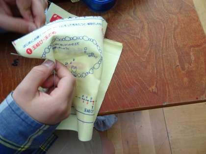 裁縫用具を安全に扱い,玉結び,玉どめに挑戦しました。