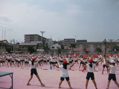 全校体操も,ほとんどの人が一生懸命です。ちょっと手を抜いてしている子の方が目立つようになってきました。