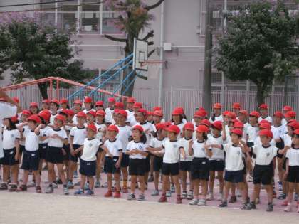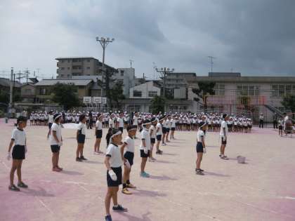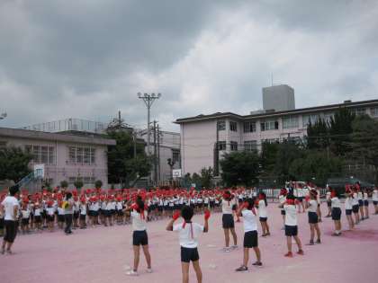応援合戦の練習です。赤組も白組もしっかりとした大きな声で応援ができました。本番では,もっと迫力が出るのでしょうね。