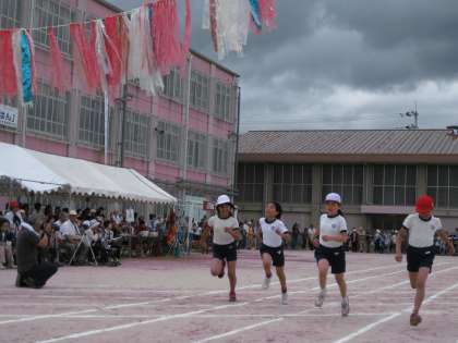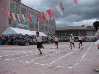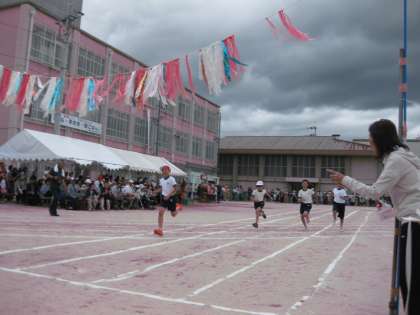 次は,6年生の100m走です。最後の徒競走です。みんな悔いが残らないように全力で走りきりました。