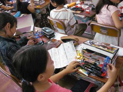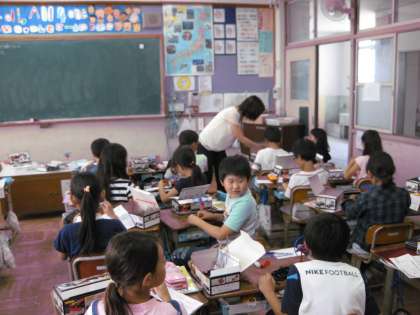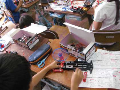 4年生は,理科の時間でした。モーターを使ってなにやら作っています。工作の時間と間違わないようにね。