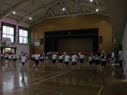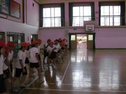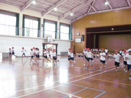 6年生が体育館で,シャトルランに取り組んでいました。なんと100回をこえる子もいました。すごい持久力ですね。