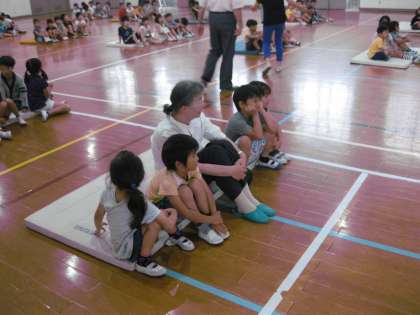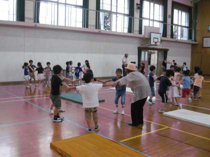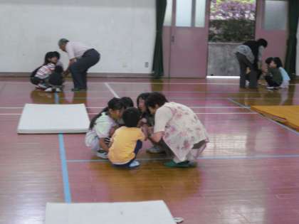 開会式が終わっていよいよふれ合いの活動です。地域の方々と一緒になって,昔から伝わる歌遊びやゲームなどで楽しみました。帰られる時に「今日は,とっても楽しかったわ」という感想をいただきました。