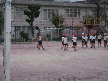 運動場の東では,陸上クラブがスタートダッシュの練習を何度もしていました。