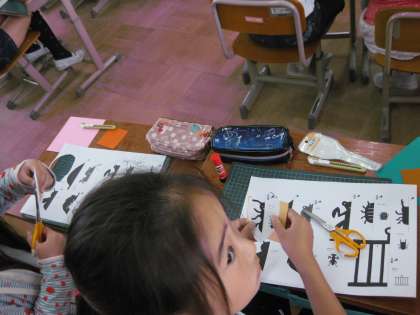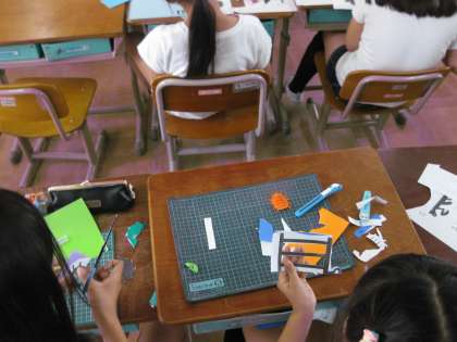 静かに活動しているのは,切り絵クラブです。今日は,クワガタムシの切り絵に挑戦中でした。結構難しそうでした。