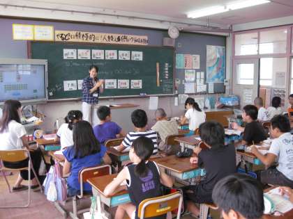 とても綺麗な英語の発音が聞こえてきました。6年生が,伏見中学校の英語科も教えておられる大城先生においでいただき,学習に励んでいました。この授業は,小中連携教育のいっかんでもあります。