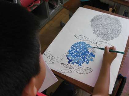 先日下書きをしていましたが,今日は,色つけをしていました。下書きで書いた一つ一