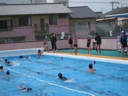 雲はやや多いのですが,晴れ間もあり絶好の水泳学習日和です。5年生も,自分の課題やねらいを明確にもって,学習を進めています。