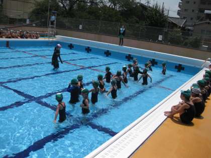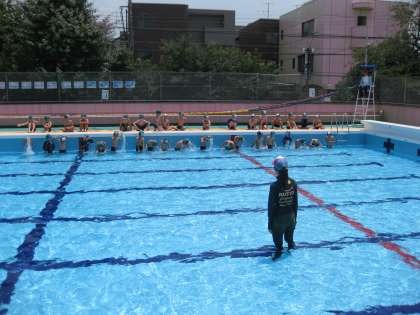 今日も梅雨の晴れ間で,気温が30度をこえました。初めてプールに入ったときは,ちょっと寒かったですが,今日は最高のプール日和でした。