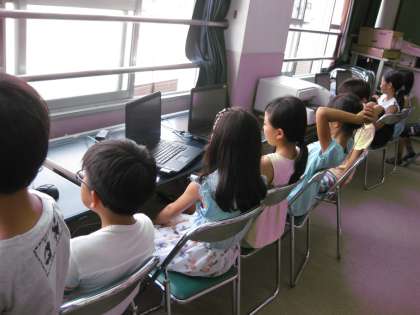 4年生が,板橋ホールでパソコン使い方を学習していました。これから,調べ学習などで使う機会が多くなるのでしっかりと練習してくださいね。
