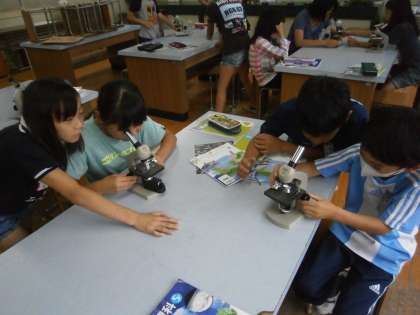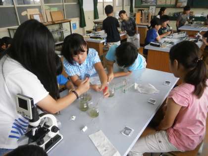 5年生は顕微鏡を使って,微生物調べをしました。