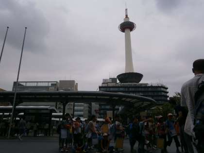 間近で見る京都タワーに大興奮です。