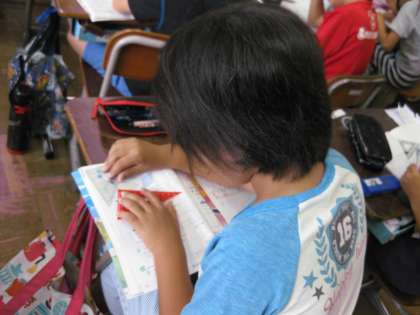 昨日,平行四辺形を作図したり、それぞれの角の角度を計ったりしていましたが,今日は,ひし形の性質について調べていました。どんなことを発見したのかな。
