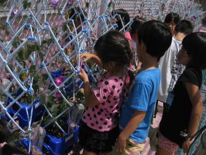 と担任の先生の一言で,子どもたちは,アサガオをじっくりと見出しました。